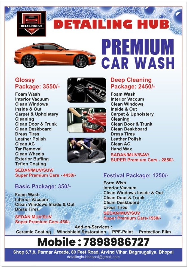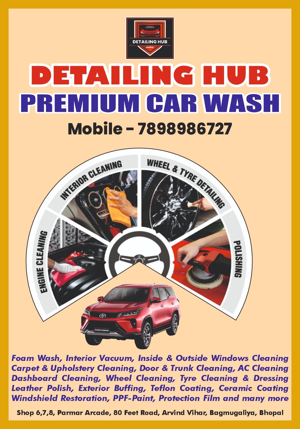 Detailing hub bhopal premium car wash and car interior cleaning available in best price in near me in bhopal.